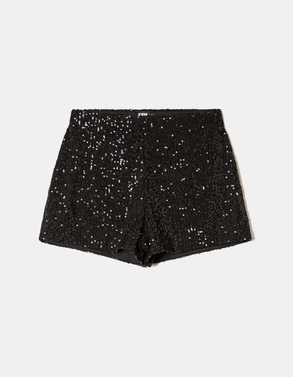 Ce short noir taille haute en sequins est l’option parfaite pour un look de soirée éclatant et audacieux. Sa taille haute met en valeur la silhouette tout en offrant un confort optimal. Les sequins ajoutent une touche glamour et captent la lumière à chaque mouvement ✨, idéal pour attirer tous les regards. Que ce soit pour une fête ou un événement spécial, ce short est conçu pour faire briller votre style et vous démarquer avec élégance.